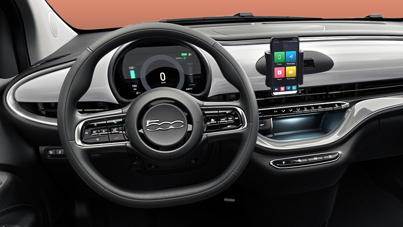 Mit unserem Fiat 500 Elektro POP wird Ihr Alltag noch besonderer. Manuelle Klimaanlage, Parksensoren hinten und das Multifunktionslenkrad sorgen für ein entspanntes Fahrgefühl. Mit der Smartphone Halterung, USB-Anschluss in der Mittelkonsole und vier Lautsprechern sind Sie immer bestens verbunden. Die Parksensoren hinten unterstützen Sie bei engen Parklücken.