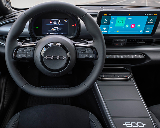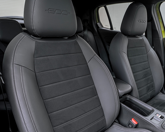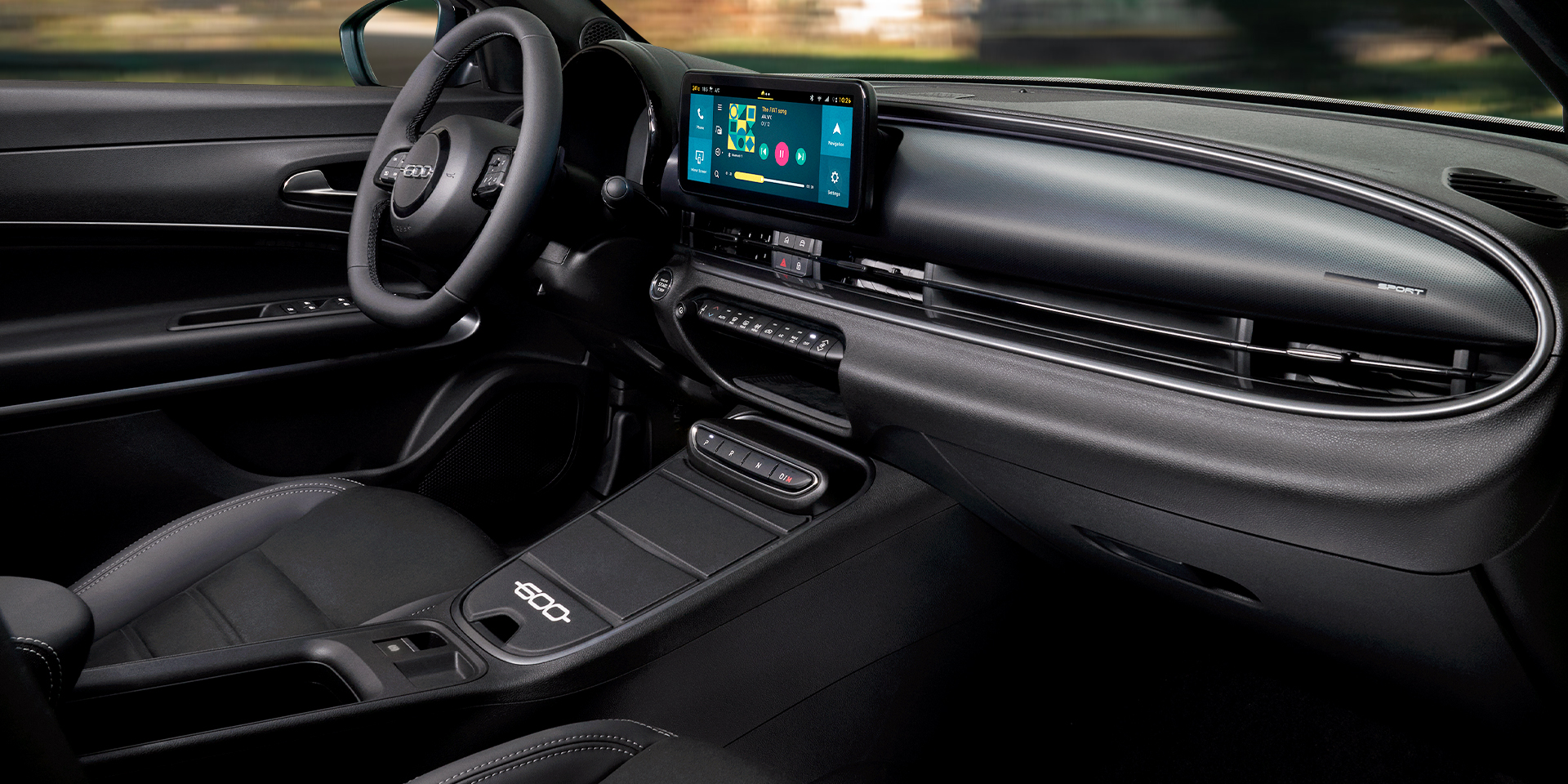 Steigen Sie ein in den neuen Fiat 600 Sport und entdecken Sie ein schwarzes Interieur, das moderne Eleganz neu definiert. Das neue Armaturenbrett-Finish, die sportlichen Sitze und die eleganten schwarzen Türverkleidungen schaffen eine Atmosphäre, in der Komfort auf Charakter trifft. Jedes Detail ist darauf ausgelegt, Sie in Stil zu hüllen und die pure 600-Energie in jedem Moment spüren zu lassen.