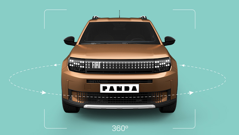 Entdecken Sie den Grande Panda Pop, Icon und La Prima aus jedem Blickwinkel mit der 360°-Ansicht. Drehen Sie das Fahrzeug, um die raffinierten Details und das exklusive Design zu bewundern – und erleben Sie Eleganz sowohl von außen als auch von innen.