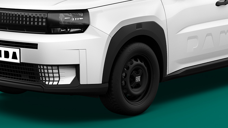 Auffälliges Design, müheloser Stil. Die 16’’-Stahlfelgen mit eleganten Radkappen verleihen dem Grande Panda Pop Benzin eine markante Präsenz und machen jede Fahrt zu einem echten Highlight.